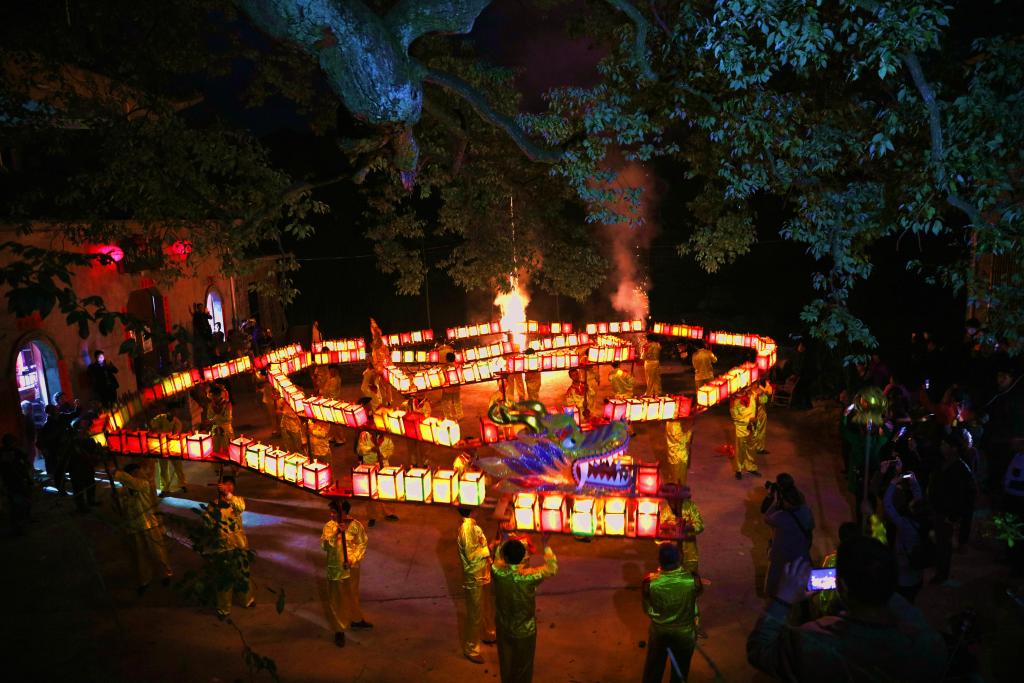 江西省撫州市崇仁縣非遺“板凳龍”演出。(毛全發(fā) 攝)