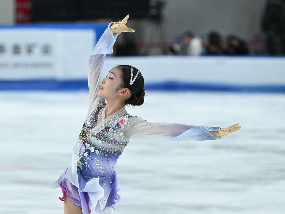 2月25日,四川隊(duì)選手金書賢在女子單人滑自由滑比賽中。新華社記者 胥冰潔 攝