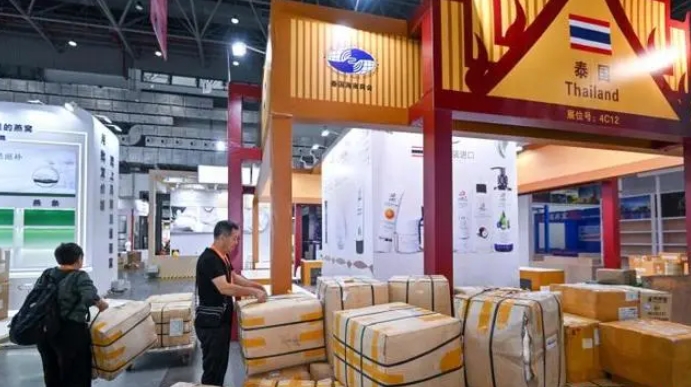 4月10日,第四屆中國(guó)國(guó)際消費(fèi)品博覽會(huì)參展物品陸續(xù)上架。圖為來(lái)自泰國(guó)的參展商整備參展商品。中新社記者 駱云飛 攝