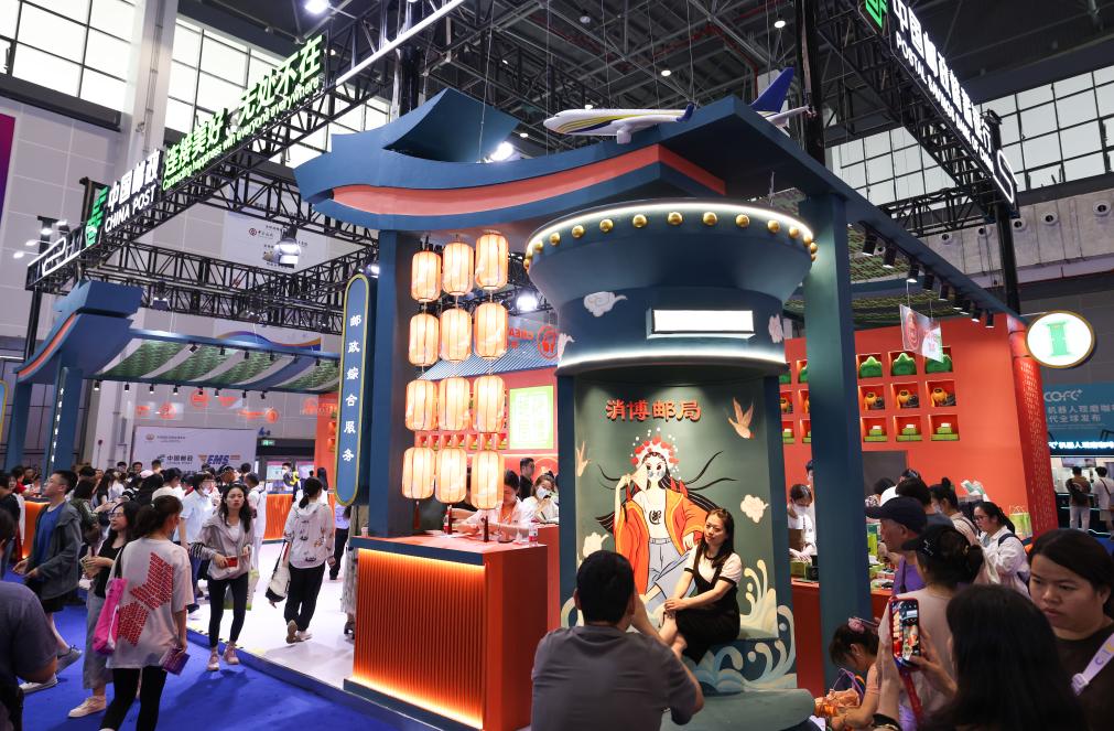 消博郵局是“消博護(hù)照”的指定發(fā)放點(diǎn)之一。今年消博郵局運(yùn)用傳統(tǒng)的云紋、祥龍等國(guó)風(fēng)元素貫穿整體,同時(shí)將消博會(huì)吉祥物“元元、宵宵”融入郵政國(guó)潮IP設(shè)計(jì),打造國(guó)潮風(fēng)尚消博郵局,凸顯多元化、年輕化、現(xiàn)代化的郵政品牌新形象,引來(lái)不少人駐足觀賞、互動(dòng)。
