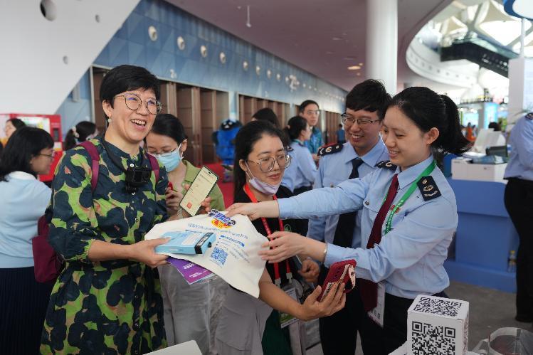 在海南從事旅游行業(yè)的盧庚英來到服務(wù)中心咨詢稅收優(yōu)惠政策時(shí),看到稅務(wù)干部穿梭在展區(qū)忙著“發(fā)福利”,便試著參與。答題有獎(jiǎng)、打卡有獎(jiǎng)……簡單操作后,盧庚英順利領(lǐng)取到了??谑卸悇?wù)局精心準(zhǔn)備的“稅務(wù)小熊”公仔以及稅務(wù)文創(chuàng)禮盒?;?dòng)期間,稅務(wù)干部還貼心地為她講解了稅收優(yōu)惠政策的享受條件和申請(qǐng)指南?!皾M載而歸!”她笑著說道。