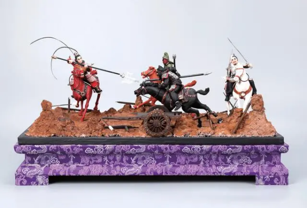 為了讓面塑順利“數(shù)字化”,郎佳子彧還創(chuàng)新改變了一些制作流程。比如,角色手握的兵器,老藝人都是制作完成后直接組合,現(xiàn)在為了方便細(xì)節(jié)掃描,需要提前預(yù)留手部握兵器的位置,風(fēng)干后再放回到角色手里?!按送猓捎诖龗呙璧摹慵龀鰜聿荒芰⒓窗惭b并固定于沙盤場(chǎng)景中,所有人物的動(dòng)作、神態(tài)都要預(yù)先在腦海中構(gòu)思成熟。這對(duì)我復(fù)刻的技術(shù)提出了新的要求。完成《三英戰(zhàn)呂布》的復(fù)刻與數(shù)字化,我花費(fèi)了整整30天。”郎佳子彧說。