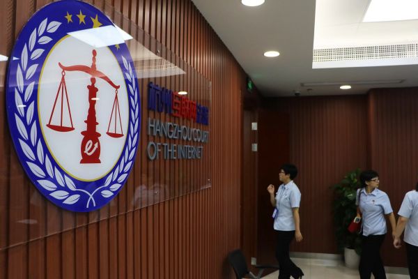 圖為2017年8月18日,中國首家互聯(lián)網(wǎng)法院——杭州互聯(lián)網(wǎng)法院在浙江杭州正式掛牌。(視覺中國)