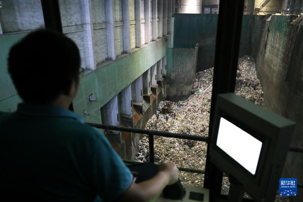 6月29日,在江西南昌固廢處理循環(huán)經(jīng)濟(jì)產(chǎn)業(yè)園,生活垃圾焚燒發(fā)電項(xiàng)目的工作人員通過操控垃圾吊移動垃圾。新華社記者 杜瀟逸 攝