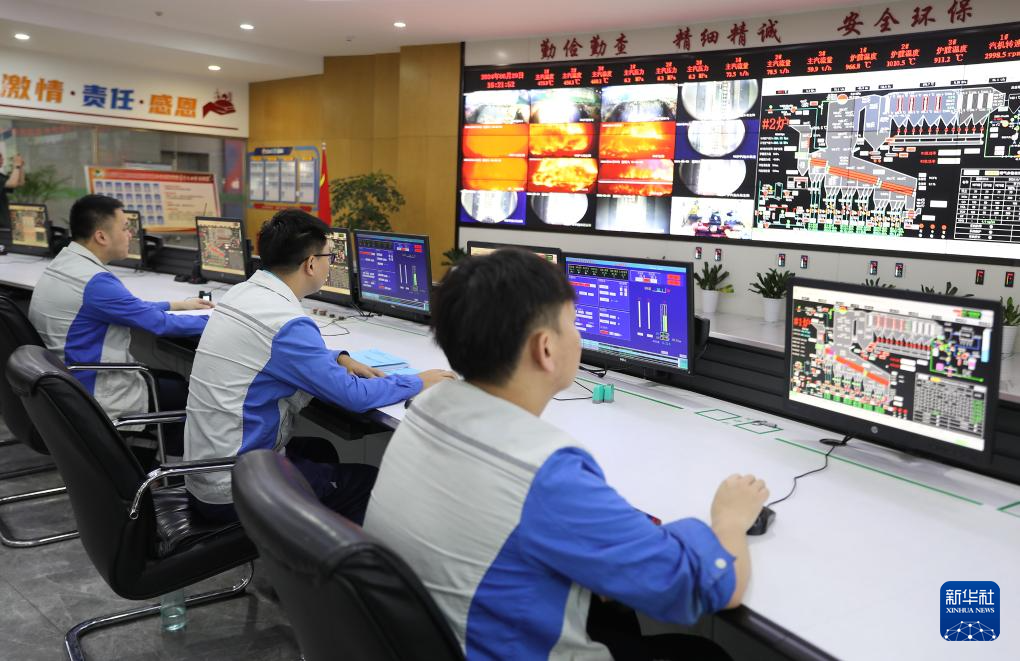 6月29日,在江西南昌固廢處理循環(huán)經(jīng)濟(jì)產(chǎn)業(yè)園,生活垃圾焚燒發(fā)電項(xiàng)目的工作人員在中控室監(jiān)控設(shè)備運(yùn)轉(zhuǎn)情況。新華社記者 杜瀟逸 攝