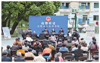 2022年11月25日,浙江省諸暨市人民檢察院在東和鄉(xiāng)章梅塔村,對郭某涉嫌危害國家重點保護植物案進行公開聽證。 本報通訊員 何若愚 攝