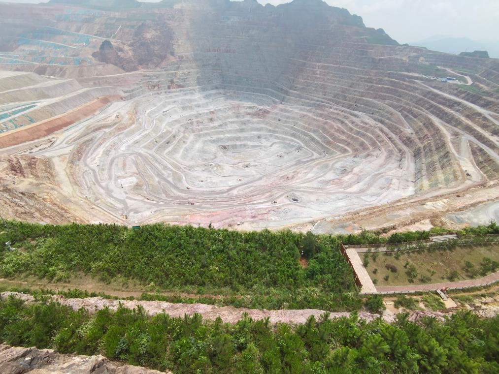 在位于福建省龍巖世界地質公園內的紫金山金銅礦區(qū)行進,猶如走進一座森林公園。數(shù)百米深的礦坑底部雖然仍在生產(chǎn),而礦區(qū)一點兒見不到傳統(tǒng)礦山環(huán)境“臟亂差”的痕跡,坑口附近的邊坡已草叢蔥郁。