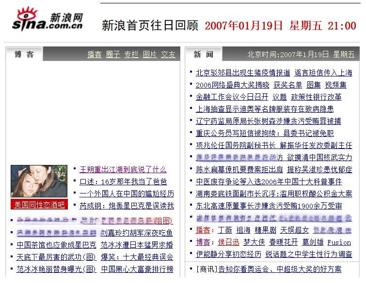 新浪首頁(yè)2007年1月19日至21日推薦我的博客。