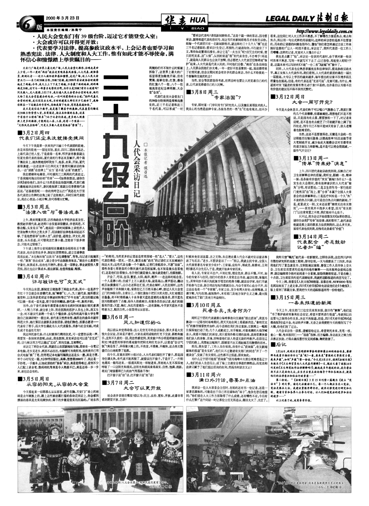 2000年3月23日,《法制日報》刊發(fā)《三十九級臺階——人代會采訪日記》。