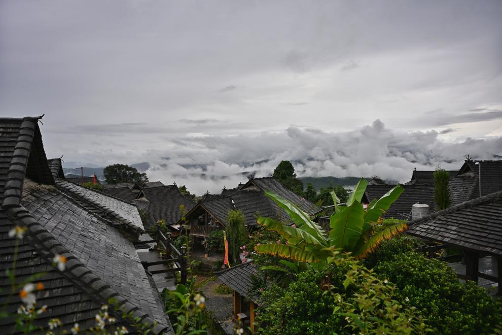 在景邁山的翁基古寨,雨水時(shí)而滂沱、時(shí)而淅瀝,游客卻依舊不少。惠民鎮(zhèn)芒景村村民張光明經(jīng)營(yíng)的客棧,也入住了多位游客。