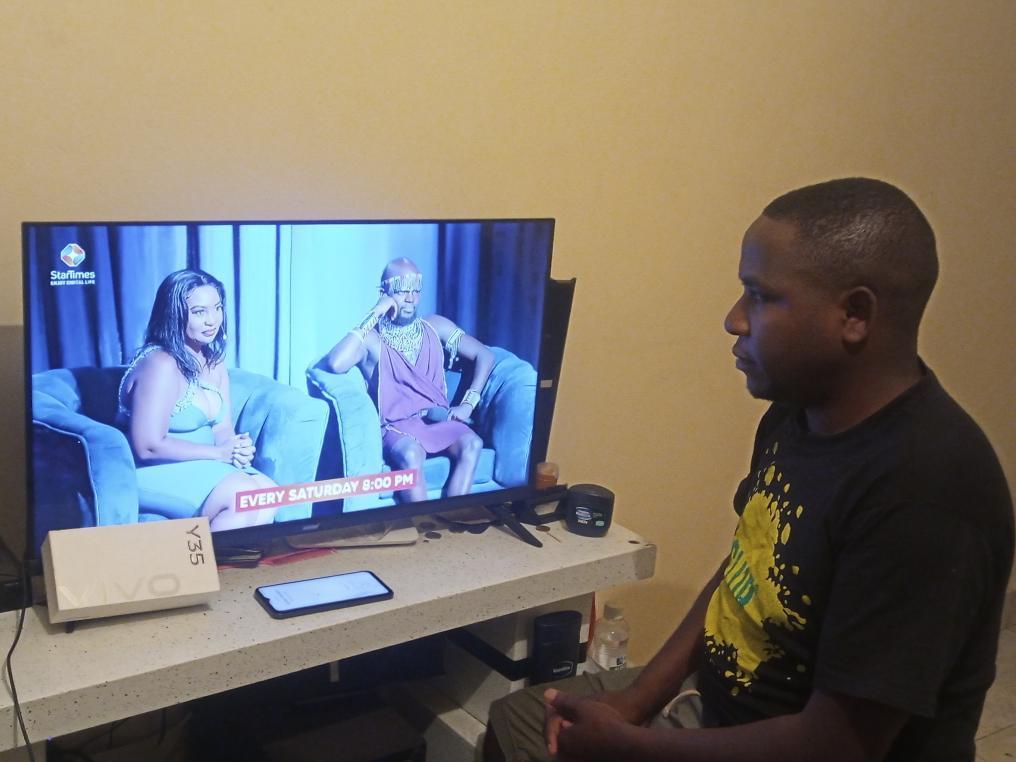 內(nèi)羅畢市民伊萊賈·姆萬達(dá)維爾在中企四達(dá)時(shí)代集團(tuán)旗下流媒體平臺(tái)收看綜藝節(jié)目。羅納德·恩喬羅格攝