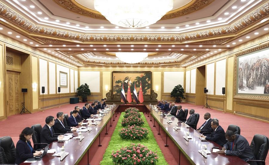 9月6日下午,國家主席習近平在北京人民大會堂會見來華出席中非合作論壇北京峰會的蘇丹主權委員會主席布爾漢。