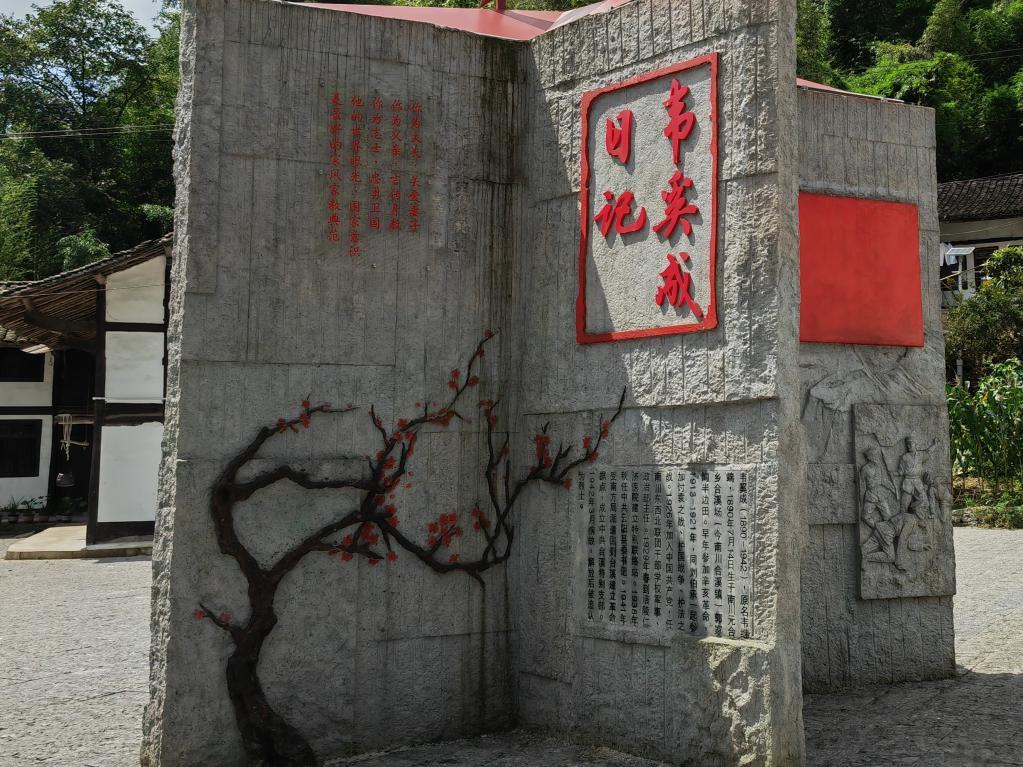 圖為韋奚成烈士舊居附近的雕塑作品。新華社記者周思宇 攝
