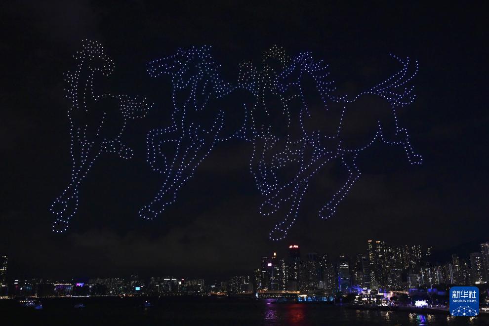 9月28日,香港舉辦“香港馬騰盛世”無人機(jī)表演,迎接國(guó)慶節(jié)的到來。