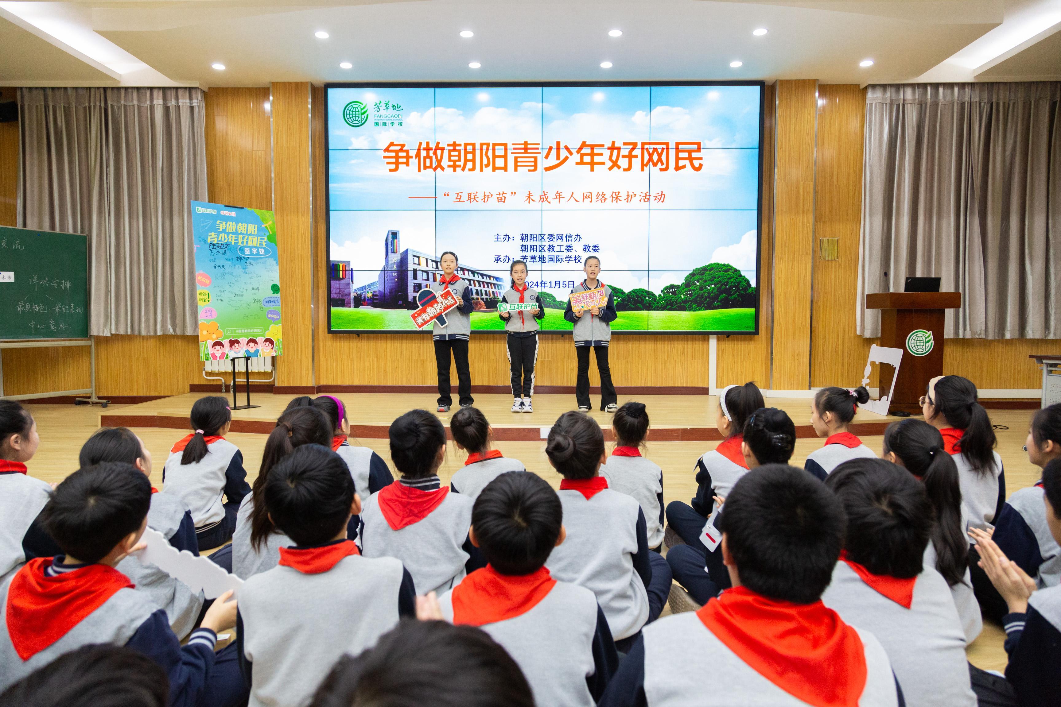 1月5日,北京市朝陽區(qū)委網(wǎng)信辦聯(lián)合朝陽區(qū)教工委、教委走進(jìn)芳草地國際學(xué)校舉辦“爭做朝陽青少年好網(wǎng)民——‘互聯(lián)護(hù)苗’未成年人網(wǎng)絡(luò)保護(hù)”主題活動。