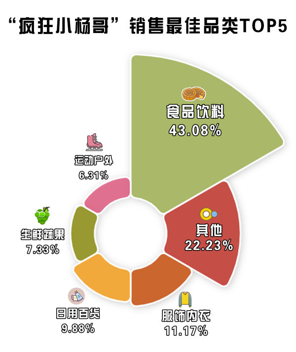 根據(jù)蟬媽媽數(shù)據(jù)顯示,“瘋狂小楊哥”粉絲數(shù)量超1.1億,是妥妥的大流量主播,今年以來,“瘋狂小楊哥”銷售最佳品類中,食品飲料以43.08%的占比位列榜首,但接二連三的食品銷售問題卻讓其翻了車。