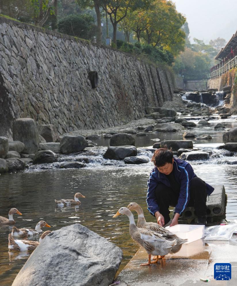 12月3日,在浙江省舟山市定海區(qū)新建村,村民在小溪邊清洗物品。