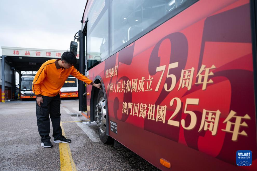 11月14日,澳巴車長林宏豪在檢查車輛。新華社發(fā)(張金加攝)