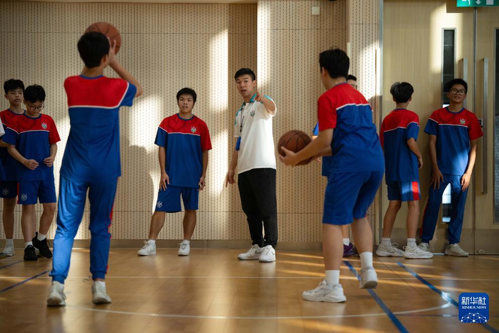 11月12日,澳門中華總商會附設(shè)青洲中學體育老師梁駿朗帶領(lǐng)學生進行籃球訓練。新華社發(fā)(張金加攝)