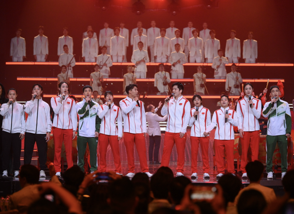 2024年9月22日,在2024“灣區(qū)升明月”大灣區(qū)電影音樂(lè)晚會(huì)上,澳門(mén)體育運(yùn)動(dòng)員代表與參加巴黎奧運(yùn)會(huì)的內(nèi)地健兒一起演唱歌曲。