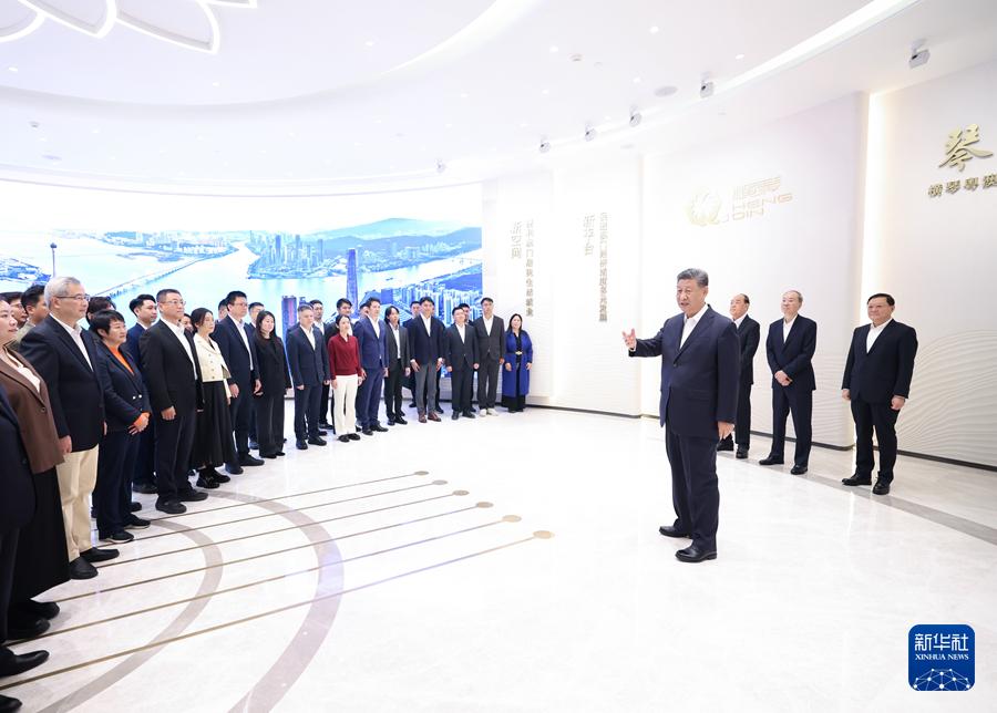 12月19日上午,中共中央總書記、國家主席、中央軍委主席習(xí)近平在澳門特別行政區(qū)行政長官賀一誠陪同下,來到橫琴粵澳深度合作區(qū)考察。這是習(xí)近平在橫琴天沐琴臺展示廳考察時(shí),同參與橫琴粵澳深度合作區(qū)規(guī)劃、建設(shè)、管理、服務(wù)等各方面代表親切交流。