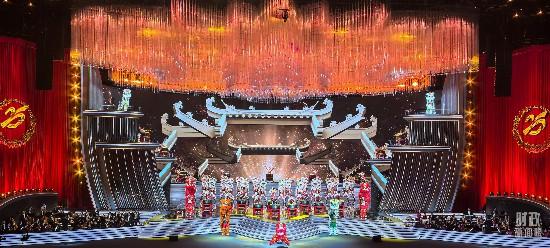 △慶祝澳門回歸祖國25周年文藝晚會(huì)現(xiàn)場燈光璀璨,歡樂喜慶。(總臺(tái)央視記者范學(xué)禹拍攝)