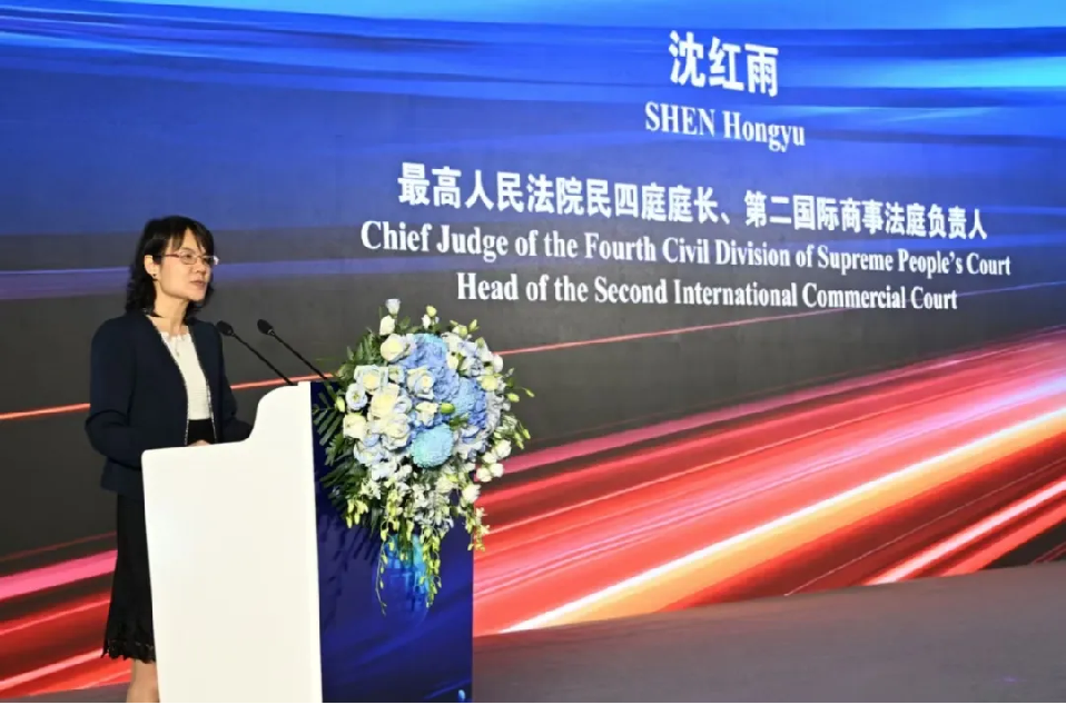 (最高人民法院民四庭庭長、第二國際商事法庭負責人沈紅雨發(fā)表主旨演講)