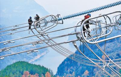 “那幾天總下雨,導線和滑車的摩擦力變小,如果牽引過快導線容易脫落,因此每分鐘只能非常仔細地放不到60米。”川10標段施工班長盛宇強說,跨越大渡河期間,3條110千伏輸電線路需要停電,由其他線路臨時轉供,為減少對居民生活影響,他們“兩班倒”輪換作業(yè)、縮短工期。