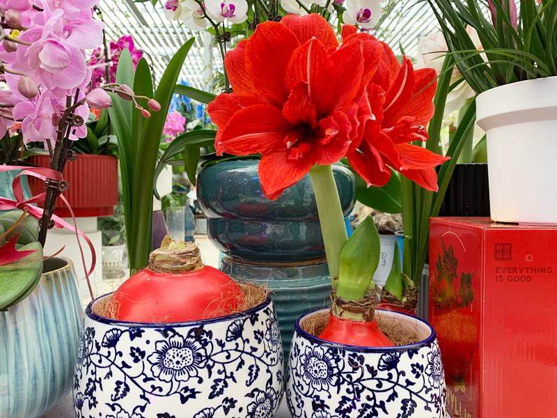 要說今年紅色花卉里最有新意的,要數(shù)朱頂紅了。朱頂紅名字里就帶著一個(gè)紅字,諧音“注定紅”更是寄托著人們對(duì)美好生活的向往。朱頂紅不只開紅花,也有嬌嫩欲滴的粉花、清新脫俗的白花,各種顏色的花朵不正寓意著燦爛的春天嗎?