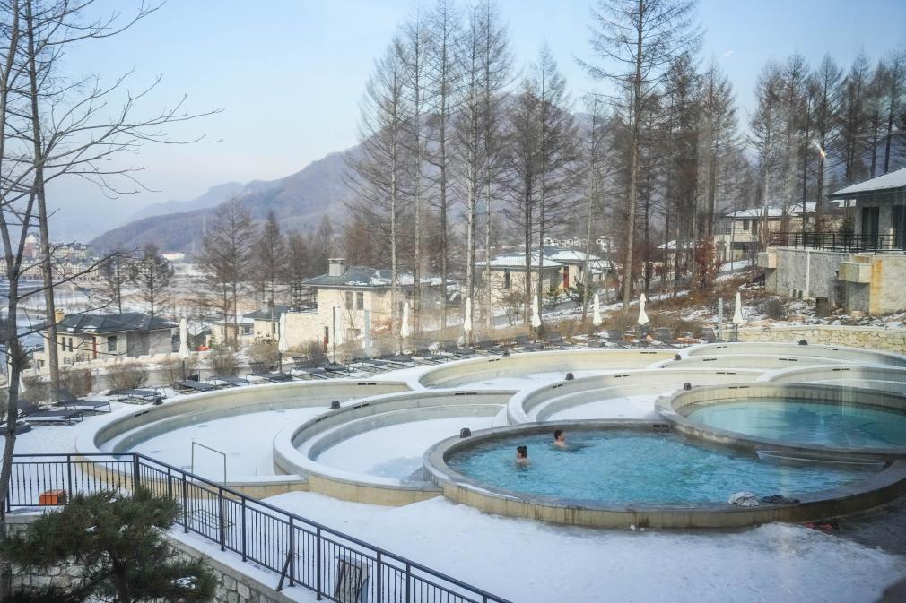 記者在溫泉小鎮(zhèn)一個室外溫泉池看到,騰騰熱氣在周身繚繞,游客發(fā)絲上凝著細碎的霜花。第一次到小鎮(zhèn)旅居過冬的德國游客沃爾夫說:“這里的溫泉水很干凈,我每天都要來泡一泡。”