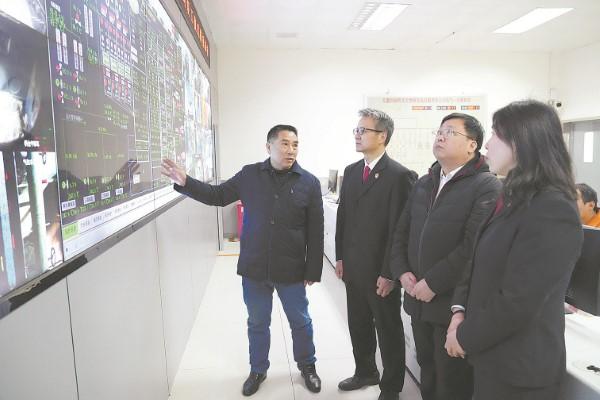 圖為明光發(fā)電公司總經(jīng)理向明光法院法官介紹復產(chǎn)運行情況。