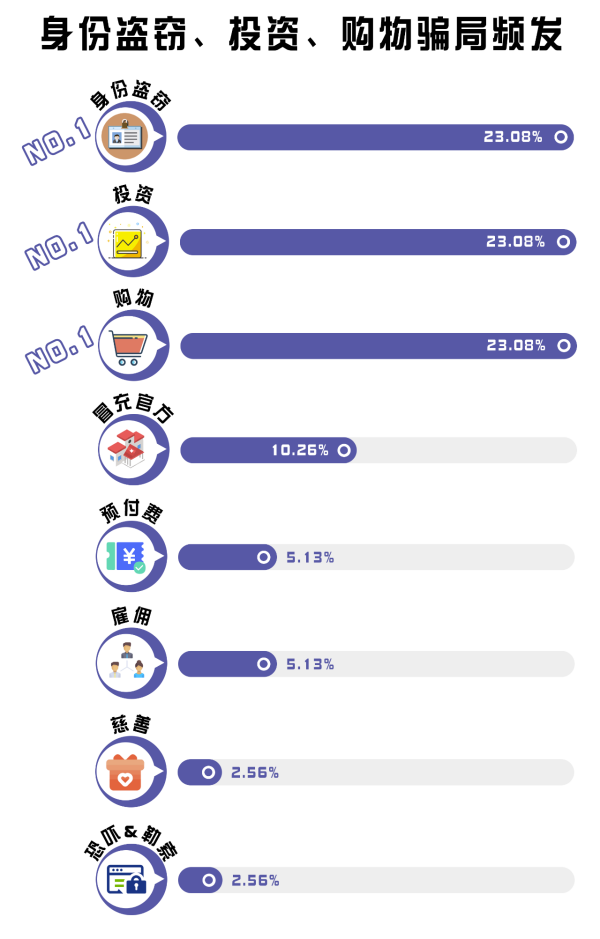 2、詐騙類型繁多,身份盜竊、投資詐騙、購(gòu)物詐騙成“重災(zāi)區(qū)”