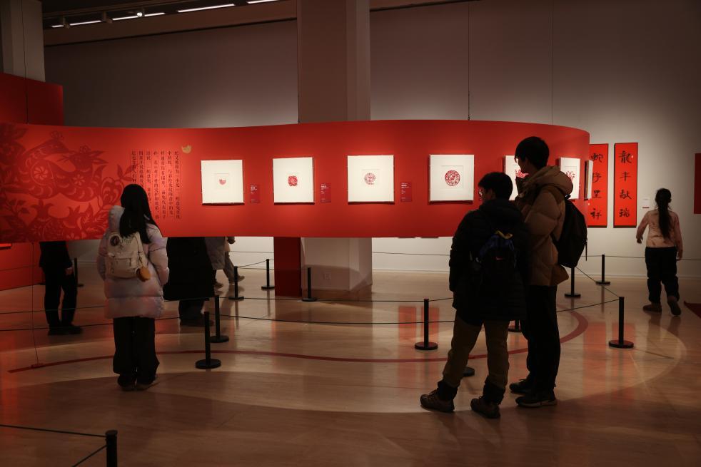2024年12月21日,觀眾在中國(guó)非物質(zhì)文化遺產(chǎn)館參觀“過(guò)年——春節(jié)主題展”。新華社記者 李賀 攝