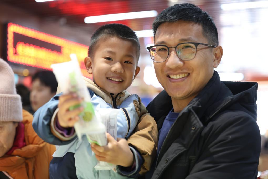 正在選購(gòu)的李鴻超一家展示麻花。郝杰 攝(新華社發(fā))