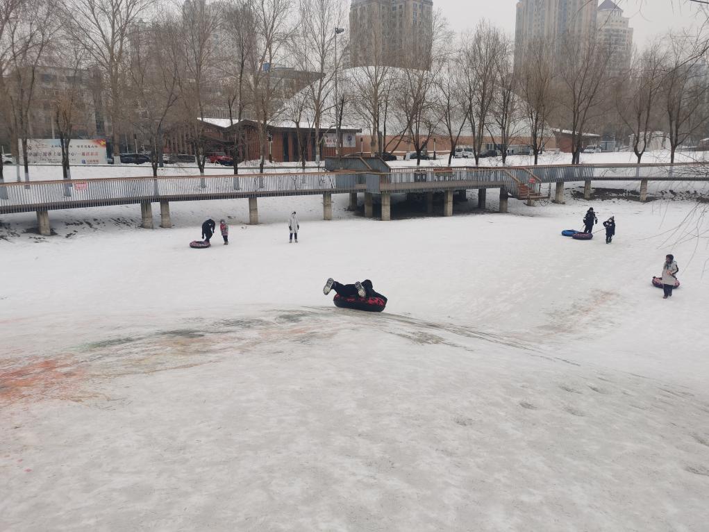 在哈爾濱湘江公園,28日一早,10歲的黃梓天就和爸爸一起來玩雪圈。這處公園里形成的自然雪坡,每年冬季都成為市民滑雪圈的好去處。“早上孩子要來,就帶著過來玩一會(huì),也是一種過年的方式?!秉S梓天的父親黃文說。