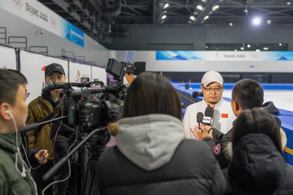 1月21日,中國短道速滑國家集訓隊主教練張晶接受媒體采訪。新華社記者 孫非 攝