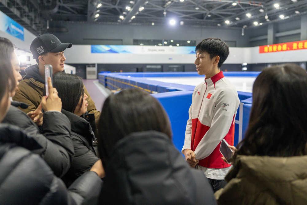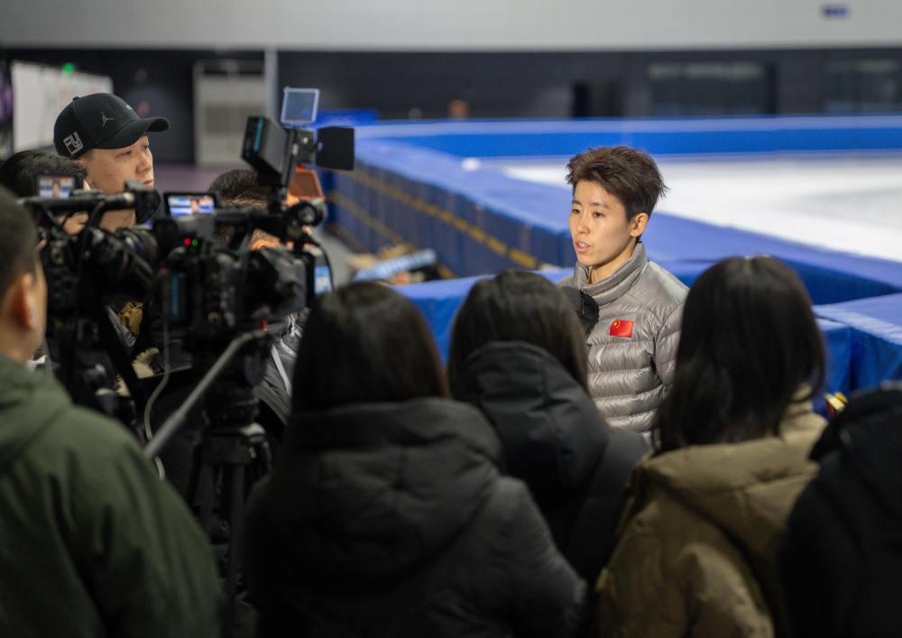 1月21日,中國短道速滑國家集訓隊隊員孫龍接受媒體采訪。新華社記者 孫非 攝
