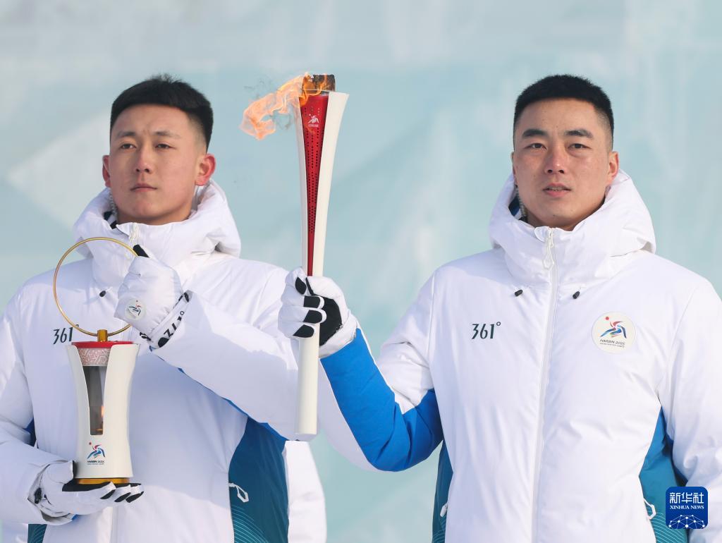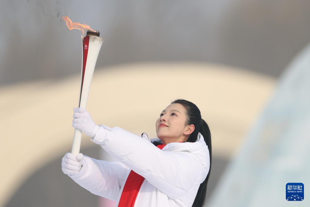 11時14分許,火炬點燃,火光躍動。本屆亞冬會火炬主題為“澎湃”,高約735毫米。整體造型似綻放的丁香花,采用中國紅、丁香紫、冰雪白等色彩,兼具中國古典與現(xiàn)代藝術相結合的美感。