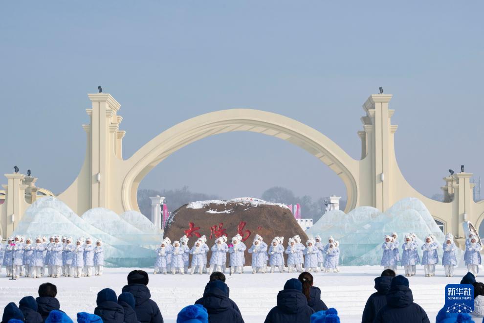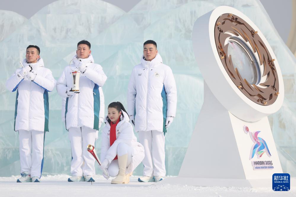 這是1月20日拍攝的太陽島風景區(qū)舉行的2025年第九屆亞洲冬季運動會火種采集儀式現(xiàn)場。新華社記者 王松 攝