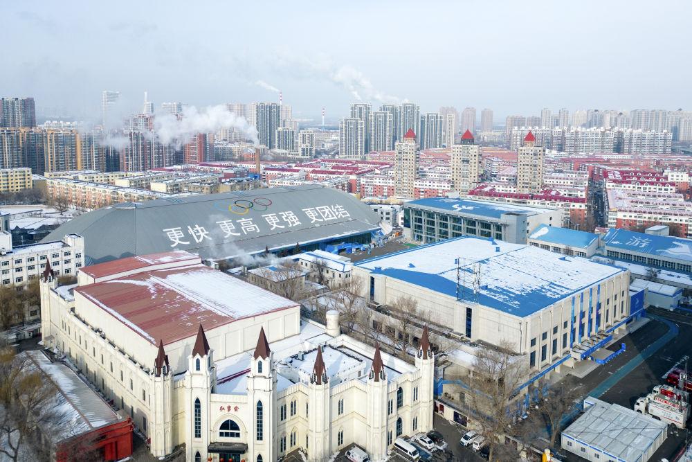 這是1月21日拍攝的哈爾濱市冰球館(男子冰球比賽場館)(無人機(jī)照片)。新華社記者 王松 攝