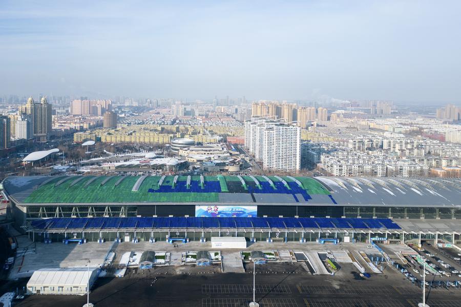這是1月27日拍攝的黑龍江省冰上訓練中心綜合館(短道速滑、花樣滑冰比賽場館)(無人機照片)。新華社記者 張濤 攝