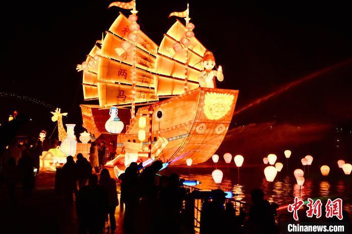 “山海神獸獻瑞”“鄭和下西洋”“船政群星”……在“兩馬同春鬧元宵”燈會現(xiàn)場,福建海洋文化、“兩馬”民俗文化、閩臺文化等同臺展示。