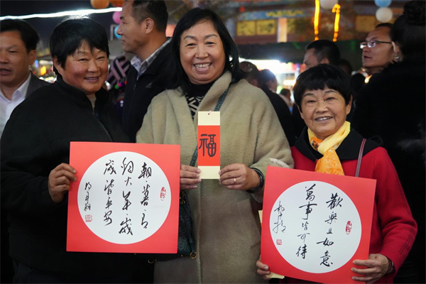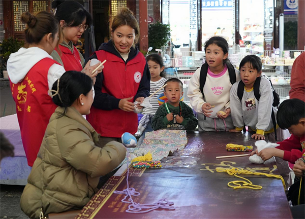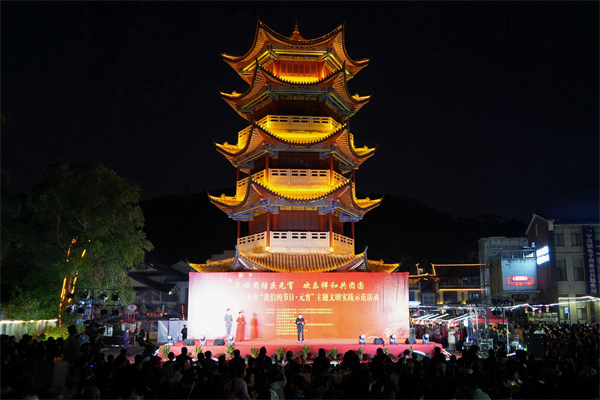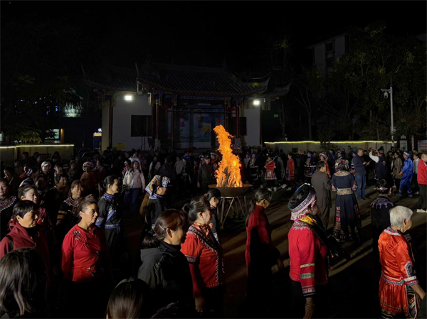 在普洱古鎮(zhèn),豐富多樣的文明實(shí)踐活動(dòng)同步開展,書法愛好者以筆為媒,飽蘸深情,精心書寫并送上承載著“祝?!薄捌桨病薄敖】怠钡哪珜?。當(dāng)社會(huì)主義核心價(jià)值觀、傳統(tǒng)文化以及移風(fēng)易俗理念巧妙融入謎面時(shí),群眾穿梭于燈謎中,答得不亦樂乎。此外,燈籠制作、糖畫制作、烤茶、拓印、染紅蛋、舂粑粑等體驗(yàn)環(huán)節(jié)吸引了不少群眾駐足?,F(xiàn)場(chǎng),各族群眾身著盛裝,手拉手圍著篝火跳舞,歡聲笑語(yǔ)賀佳節(jié),描繪出中華民族一家親的美好畫面,營(yíng)造歡樂祥和的節(jié)日氛圍。