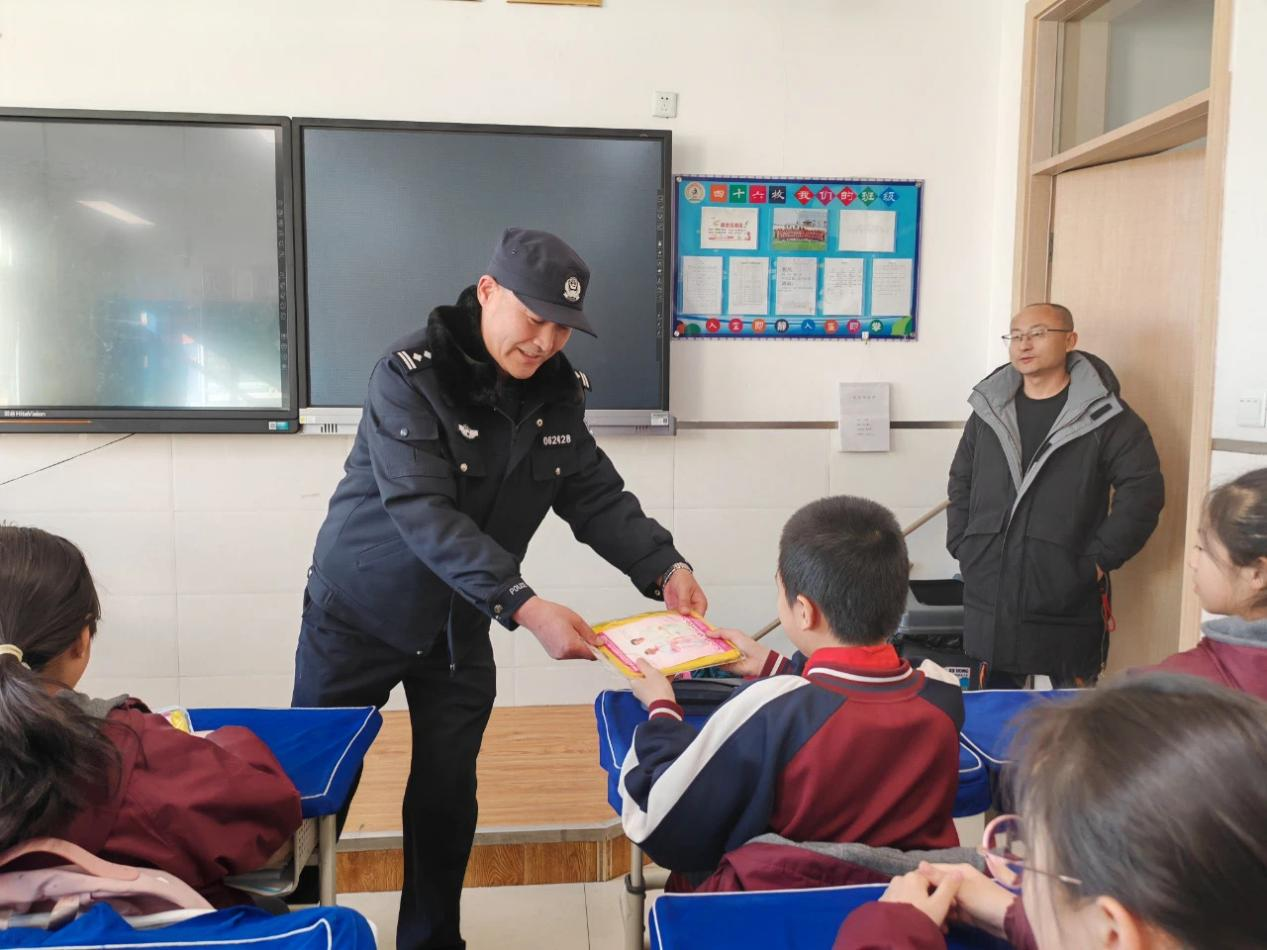 圖為白殿華同志在線路周邊學(xué)校開展愛路護路宣傳。(太原鐵路公安局大同公安處大同站派出所供圖)