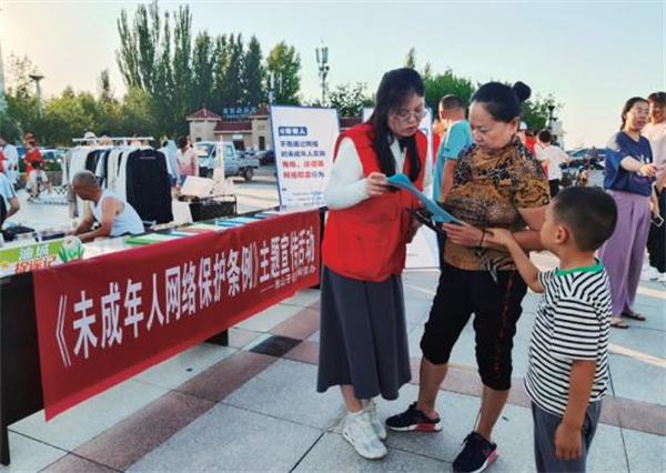 2024年7月克拉瑪依市獨山子區(qū)委網(wǎng)信辦在南廣場跳蚤市場舉辦《未成年人網(wǎng)絡(luò)保護(hù)條例》主題宣傳活動