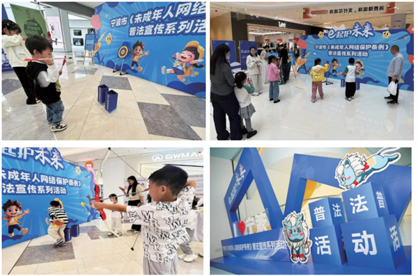 契合未成年人心理需求,重點(diǎn)強(qiáng)化參與性和互動(dòng)性。線下活動(dòng)中,現(xiàn)場布置主題打卡框,搭建趣味主題小游戲區(qū)域,設(shè)置簽名墻邀請(qǐng)未成年人及家長簽名留念,制作未成年人網(wǎng)絡(luò)保護(hù)標(biāo)語海報(bào),營造熱烈喜慶的良好氛圍。搭建起互動(dòng)舞臺(tái),通過射箭互動(dòng)—擊碎網(wǎng)絡(luò)不良信息、投壺互動(dòng)—提高自身網(wǎng)絡(luò)素養(yǎng)、套圈互動(dòng)—向網(wǎng)絡(luò)沉迷說不等多種生動(dòng)有趣的互動(dòng)游戲,激發(fā)未成年人參與熱情,寓教于樂讓未成年人學(xué)習(xí)掌握《條例》要點(diǎn)。在線上平臺(tái),制作上線了普法宣傳主題視頻、普法四格漫畫、普法知識(shí)問答、對(duì)“不良信息”說NO——網(wǎng)絡(luò)普法小游戲等多種形式的普法宣傳,將《條例》的相關(guān)條款進(jìn)行了詳細(xì)的解讀和宣傳,重點(diǎn)突出了未成年人網(wǎng)絡(luò)素養(yǎng)提升、網(wǎng)絡(luò)信息內(nèi)容規(guī)范、個(gè)人信息網(wǎng)絡(luò)保護(hù)、網(wǎng)絡(luò)沉迷防治等關(guān)鍵內(nèi)容。