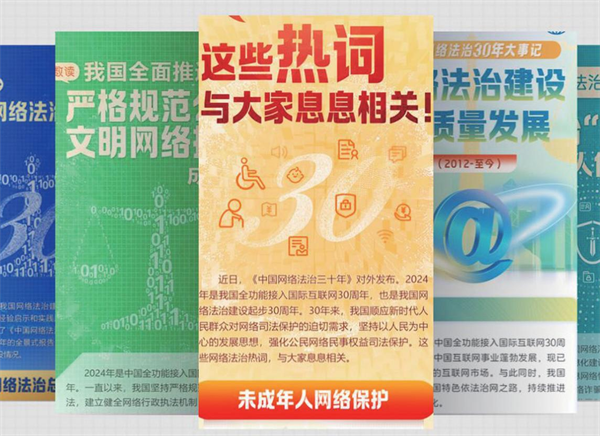 2024年是中國全功能接入國際互聯(lián)網(wǎng)30周年,也是中國網(wǎng)絡(luò)法治建設(shè)起步30年。在憲法宣傳周期間,頻道將這兩個重要節(jié)點巧妙結(jié)合,分階段打出“組合拳”。前期推出海報《2024憲法宣傳周|一組數(shù)據(jù)看網(wǎng)絡(luò)法治三十年成效》,精心梳理了相關(guān)權(quán)威數(shù)據(jù),創(chuàng)新運用七張數(shù)據(jù)海報,盤點網(wǎng)絡(luò)法治三十年成效,展現(xiàn)憲法精神如何引領(lǐng)新時代網(wǎng)絡(luò)法治發(fā)展。產(chǎn)品推出后,在新華網(wǎng)客戶端頭部區(qū)域展示,一小時內(nèi)訪問量達(dá)150萬人次,獲騰訊熱榜置頂,并被七十余家媒體廣泛轉(zhuǎn)載。宣傳周收尾時推出短視頻產(chǎn)品《2024憲法宣傳周丨各地解鎖普法新“招式”》,集納此次宣傳周各地有特色的工作亮點,運用快閃短視頻的方式,全方位呈現(xiàn)宣傳成效。產(chǎn)品在新華社和新華網(wǎng)客戶端均重點展示,訪問量共計一百余萬人次,為憲法宣傳周營造了良好的輿論氛圍。