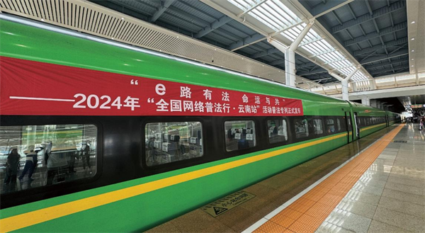 依托中老鐵路的國(guó)際知名度和外宣橋梁紐帶功能,聯(lián)合鐵路部門,聯(lián)動(dòng)州(市)網(wǎng)信和司法部門,在中老鐵路昆明至磨憨段之間打造網(wǎng)絡(luò)普法特色主題專列,以“移動(dòng)普法宣傳站”的形式開展豐富多彩的線上線下普法宣傳活動(dòng),開辟網(wǎng)絡(luò)普法新場(chǎng)景,讓法律知識(shí)變得生動(dòng)有趣、觸手可及。一是以“e路有法命運(yùn)與共”冠名主題專列,宣傳宣介我國(guó)關(guān)于構(gòu)建網(wǎng)絡(luò)空間命運(yùn)共同體的“四項(xiàng)原則”和“五點(diǎn)主張”。二是以中國(guó)網(wǎng)絡(luò)法治三十年為重點(diǎn),打造特色主題車廂全面展示中國(guó)網(wǎng)絡(luò)法治建設(shè)成就,普及網(wǎng)絡(luò)法律知識(shí),推動(dòng)尊法學(xué)法守法用法日益成為網(wǎng)絡(luò)空間廣泛共識(shí)和基本準(zhǔn)則。三是以線上線下聯(lián)動(dòng)和中老鐵路沿線站點(diǎn)接力的方式,讓普法更“接地氣”,服務(wù)群眾“零距離”。四是以主流媒體強(qiáng)勢(shì)宣傳報(bào)道和視頻連線相結(jié)合的方式,擴(kuò)大特色主題專列影響力。