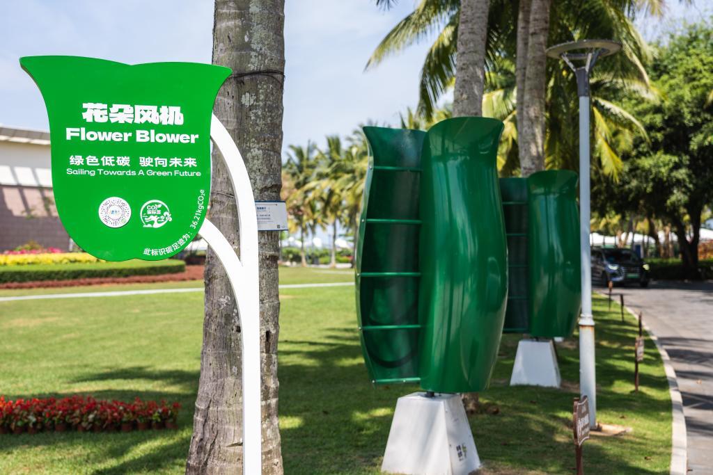 這是2024年3月27日拍攝的博鰲近零碳示范區(qū)內(nèi)的花朵風(fēng)機(jī)?;ǘ滹L(fēng)機(jī)用來(lái)收集風(fēng)能,是島內(nèi)可再生能源利用項(xiàng)目之一。新華社記者 曹夢(mèng)瑤 攝