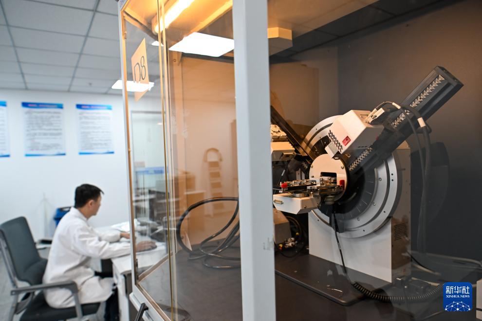 在天津陳塘科技商務區(qū)天津知微材料科技有限公司,檢測人員通過X射線多晶衍射儀進行材料分析(3月26日攝)。